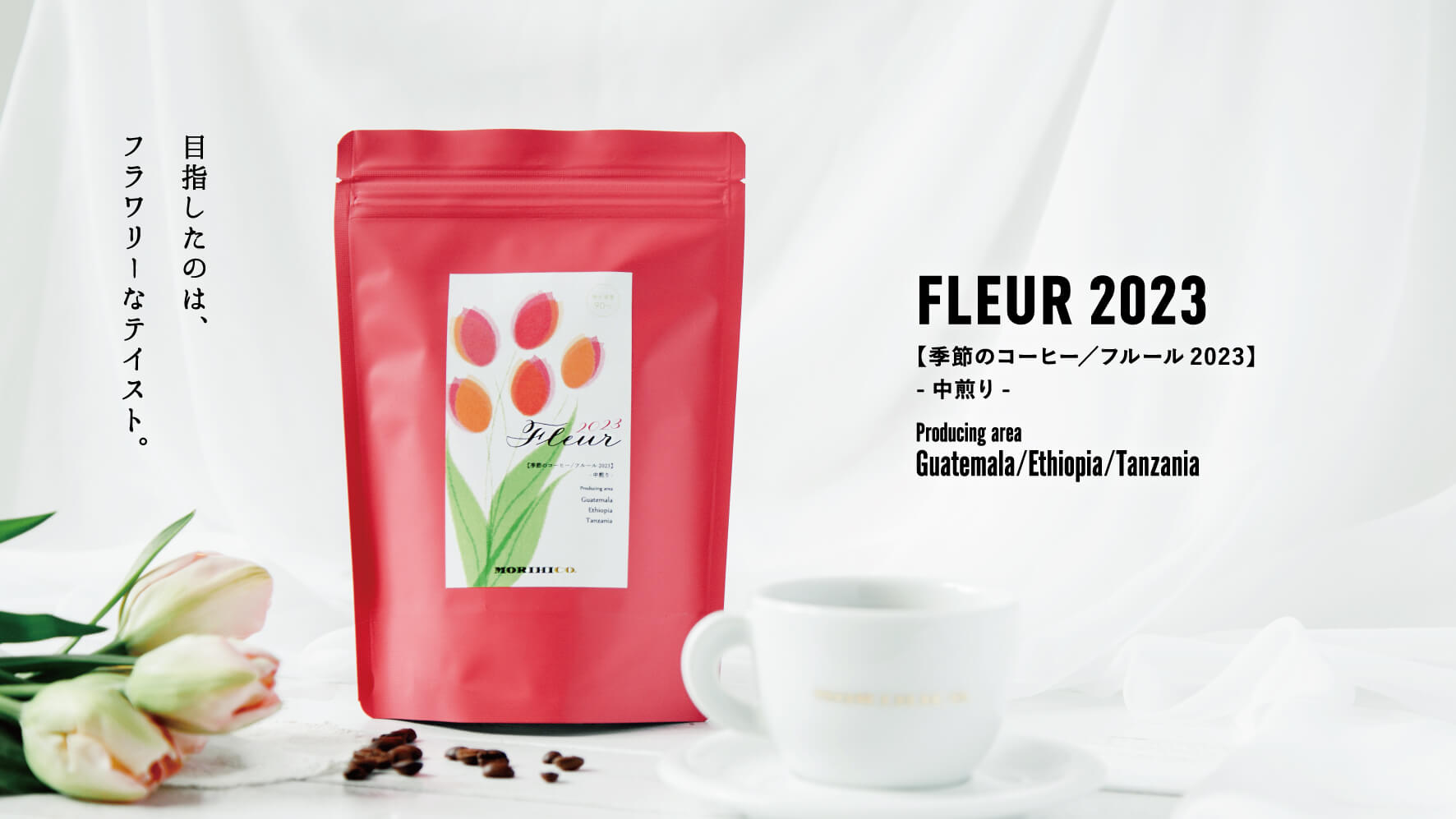 華やかな香味のグァテマラをベースに甘いエチオピアと爽やかなタンザニアを合わせ、中煎りでバランス良く仕上げました。